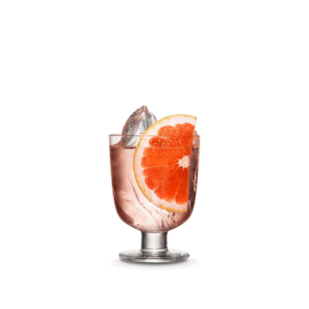 Probiere den Pink Gin mit Sodawasser oder Fever-Tree Tonic Water und einer Scheibe Grapefruit.
